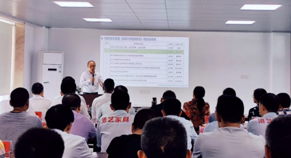 匠心成就品質(zhì),變革促進(jìn)增長!近日,湖南桂陽港藝家具有限公司攜手遠(yuǎn)大方略管理咨詢集團(tuán),正式啟動(dòng)《組織管理體系建設(shè)》咨詢項(xiàng)目。遠(yuǎn)大方略顧問團(tuán):項(xiàng)目經(jīng)理梁老師、項(xiàng)目組長彭老師、遠(yuǎn)大方略咨詢師呂老師正式進(jìn)駐,和港藝家具管理班子一起建立規(guī)范實(shí)效、可落地的標(biāo)準(zhǔn)化管理體系。