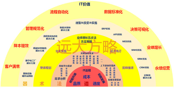遠(yuǎn)大方略智能制造信息化運(yùn)用管理咨詢作為實(shí)施系統(tǒng)的指導(dǎo)思想,軟件為核心技術(shù),為中國(guó)中小實(shí)體企業(yè)提供量身定制的行業(yè)解決方案,實(shí)現(xiàn)企業(yè)的策略:創(chuàng)新、速度、效率、品質(zhì)、成本