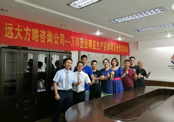 2018年8月,浙江萬邦塑業(yè)有限公司(以下簡稱“萬邦塑業(yè)”)攜手遠大方略落地精益生產管理咨詢項目。遠大方略駐廠咨詢師徐榮城老師,王旭昶老師入駐萬邦塑業(yè)。通過與萬邦塑業(yè)經(jīng)營團隊研究探討,遠大方略項目組主導導入精益生產模式,主要圍繞公司車間布局優(yōu)化、現(xiàn)場5s管理、現(xiàn)場生產效率提升、班組建設、計劃管理等展開改善,通過管理改善,提高公司的人均產值、降低損耗、提高客戶滿意度、培養(yǎng)和提升內部管理團隊。