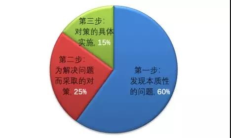 “問題解決”所追求的是,找出問題的根本原因(本質(zhì)的問題),然后想出解決辦法,所以如果發(fā)現(xiàn)本質(zhì)問題,就可以說問題已經(jīng)解決了60%。解決問題時,希望大家要用流程考慮,用流程考慮的話就不會遺漏。