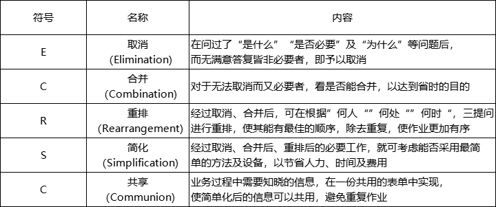 對(duì)現(xiàn)有的工作方案進(jìn)行考核分析的目的是為了建立新的工作方法和新的工作秩序,這樣就要求改善工作打破傳統(tǒng)的工作方式,靈活運(yùn)用以下五大原則對(duì)現(xiàn)行的工作方法進(jìn)行革新。如表所示: