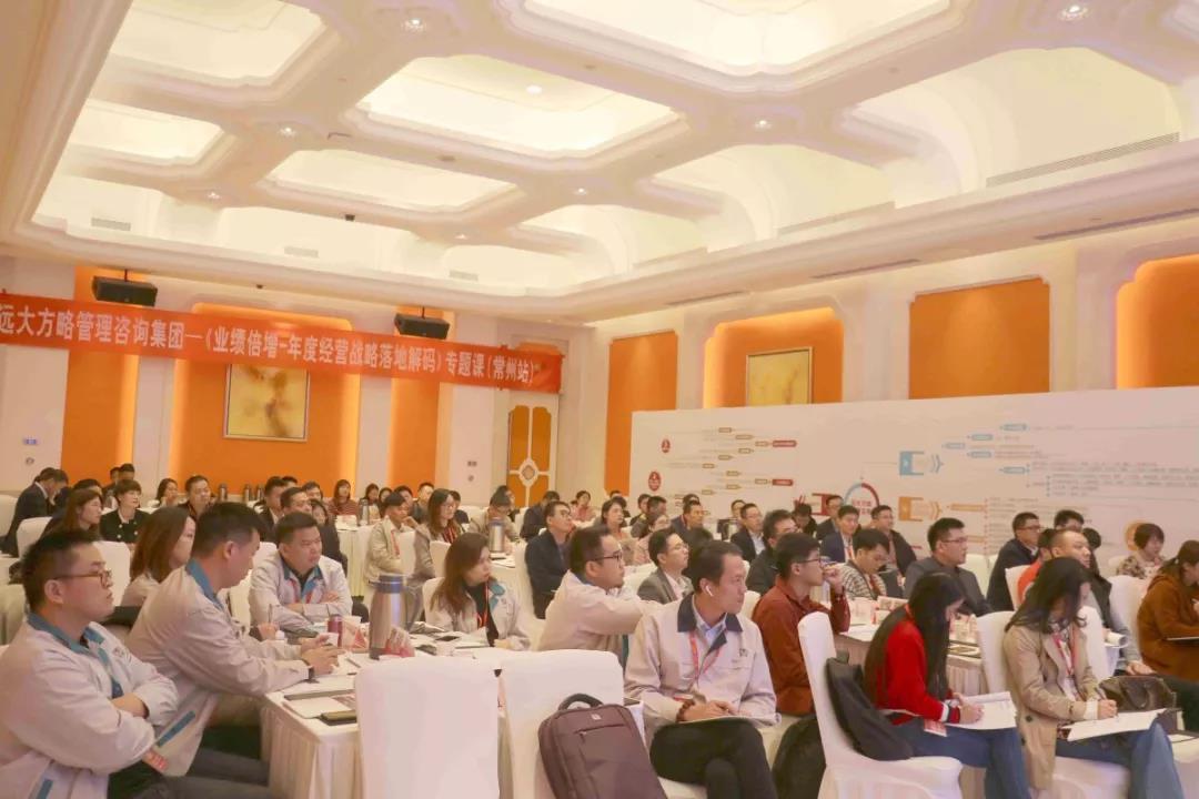 2019年11月15日—16日,遠(yuǎn)大方略《業(yè)績倍增---年度經(jīng)營戰(zhàn)略落地解碼》全國巡講課第二站,在常州白金漢爵大酒店開講?,F(xiàn)場齊聚長三角100+位企業(yè)董事長、總經(jīng)理、各事業(yè)部副總等參與本次課程學(xué)習(xí)探討。
