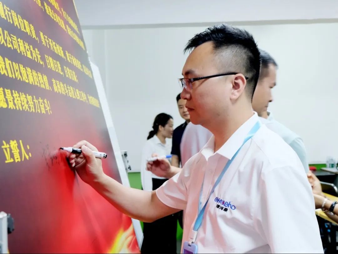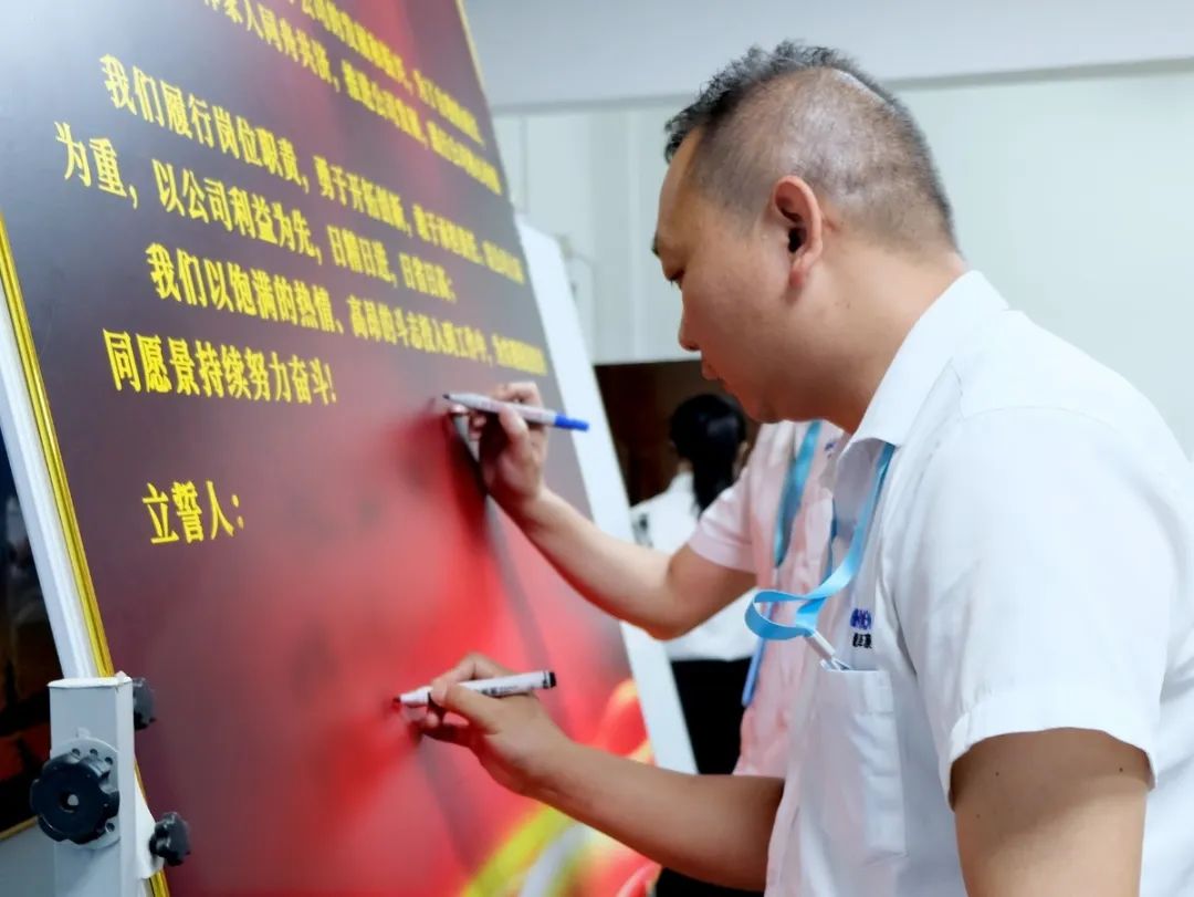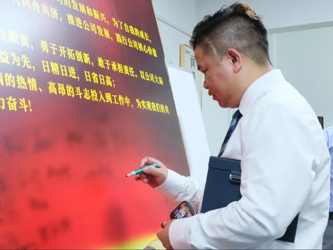 會(huì)上,萬(wàn)總為項(xiàng)目老師頒發(fā)了授權(quán)書和聘書,帶領(lǐng)項(xiàng)目關(guān)鍵人員在誓詞上簽字并集體宣誓,鼓勵(lì)大家和公司共同成長(zhǎng)進(jìn)步。
