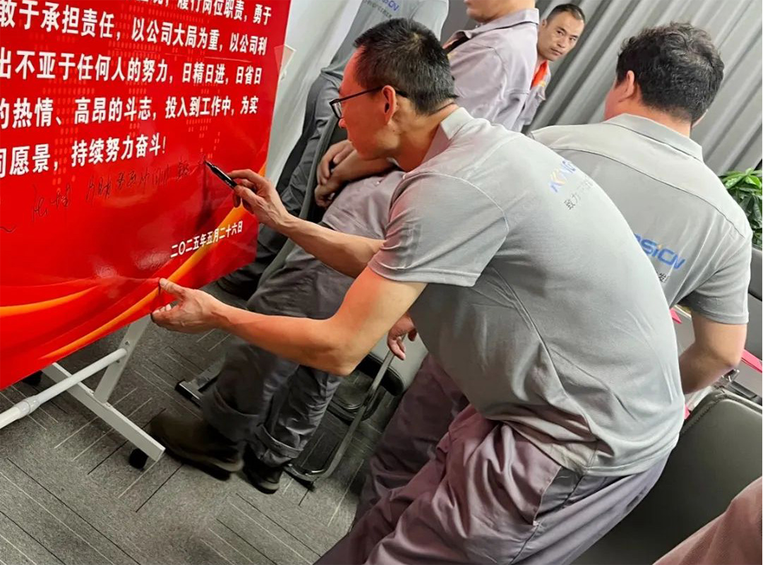 會(huì)上,于總為項(xiàng)目老師頒發(fā)了聘書(shū),給項(xiàng)目關(guān)鍵人員頒發(fā)了任命書(shū),帶領(lǐng)大家在誓言上簽下名字并集體宣誓。鼓勵(lì)大家積極投身變革提升能力,為公司持續(xù)發(fā)展增添助力。