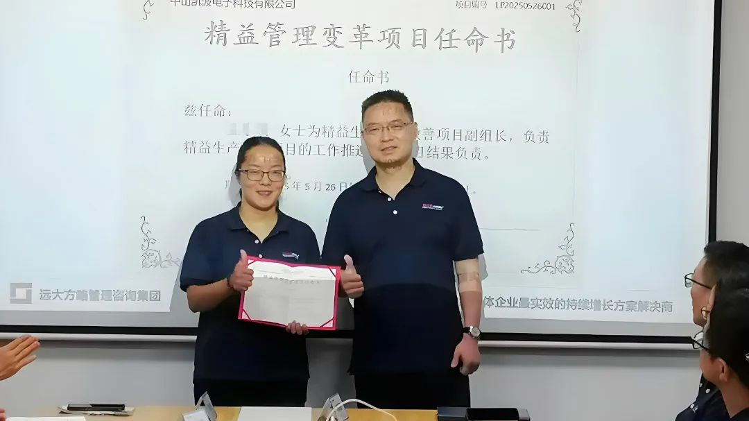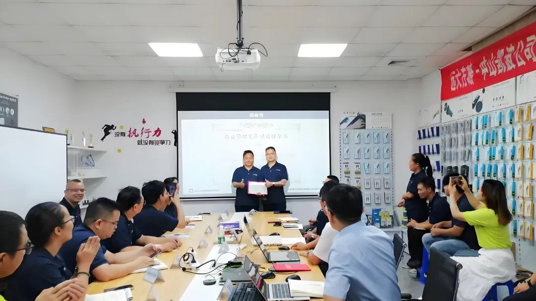 為促進(jìn)項(xiàng)目的有效落地,此次改善還成立了專項(xiàng)改善小組,明確各崗位職責(zé),強(qiáng)化責(zé)任意識(shí),會(huì)上王總為遠(yuǎn)大方略顧問(wèn)團(tuán)頒發(fā)授權(quán)書(shū),為精益改善小組成員頒發(fā)了任命書(shū)。